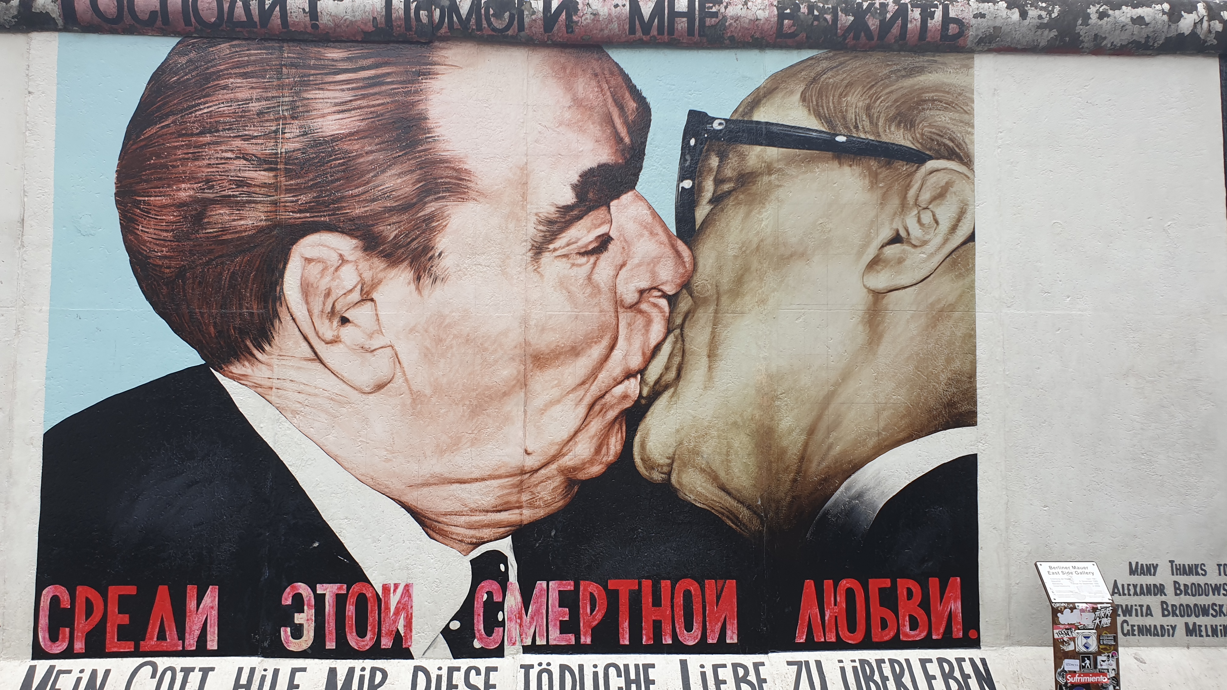 이스트 사이드 갤러리는 베를린 장벽이 허물어지고 통일이 되면서 없어진 벽을 세계 예술가들이 합작해서 만들어진 벽전시공간이라고 보시면 될것 같습니다.
